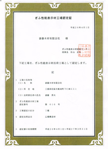 より安心、安全に使用していただける製品とするため、日本農林規格、JAS法に基づいた生産管理体制や全量品質検査を実施し、全木検検査のもとBタイプ工場として2種類の認定を取得しております。